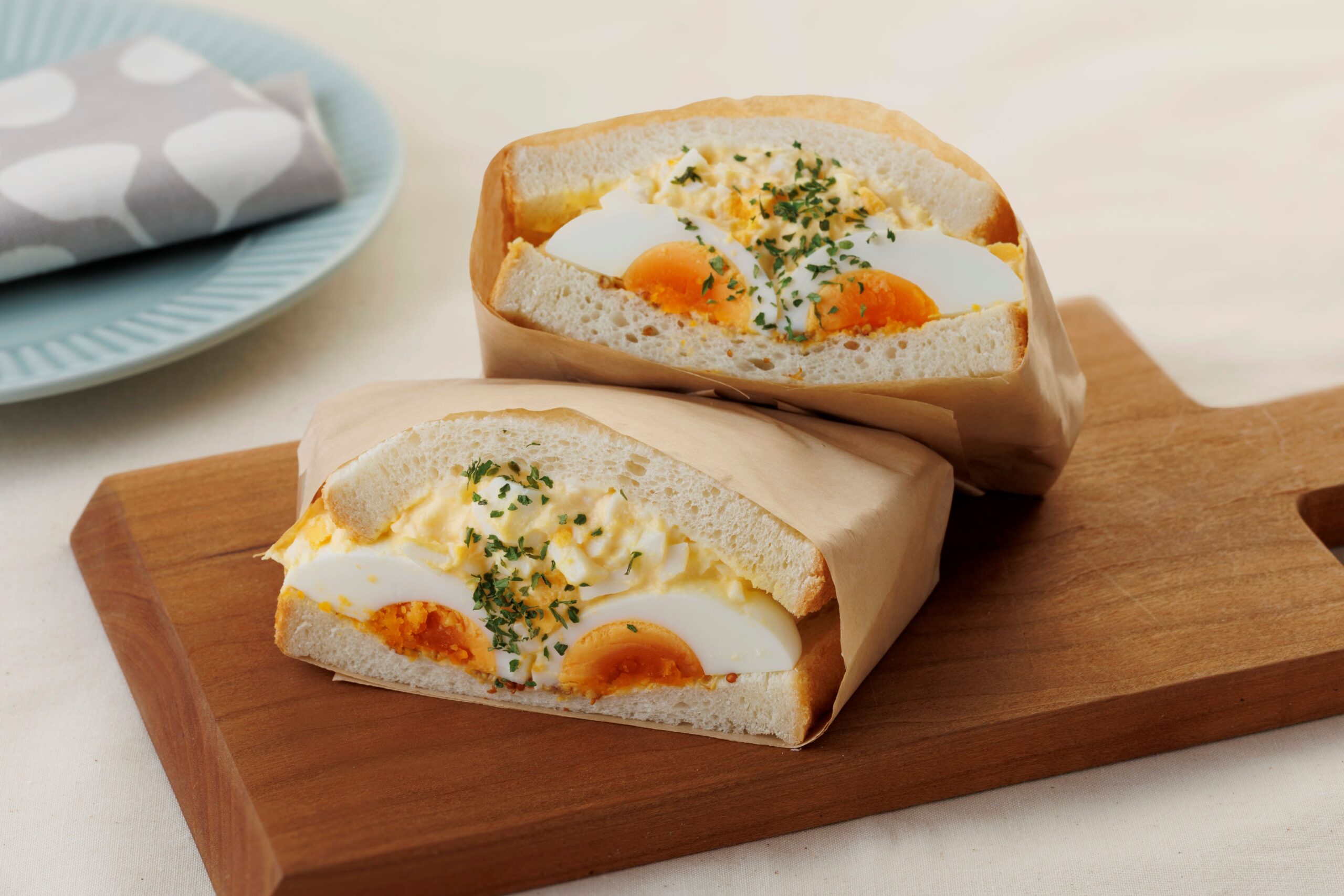 ごろごろとした半熟たまごと、くちどけのよいタマゴサラダをぎっしり挟んだ、たまご好きにはたまらないサンドイッチです。
