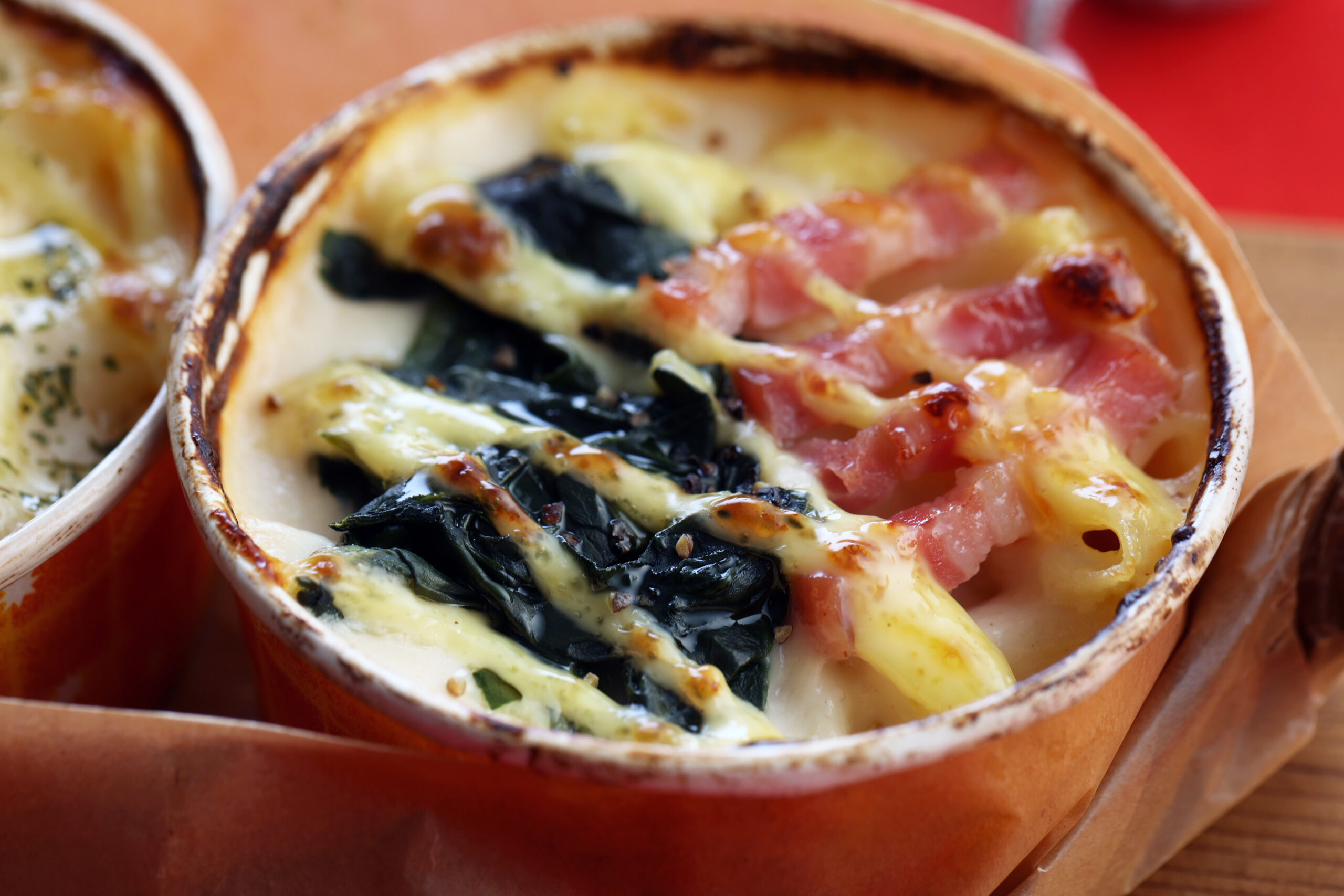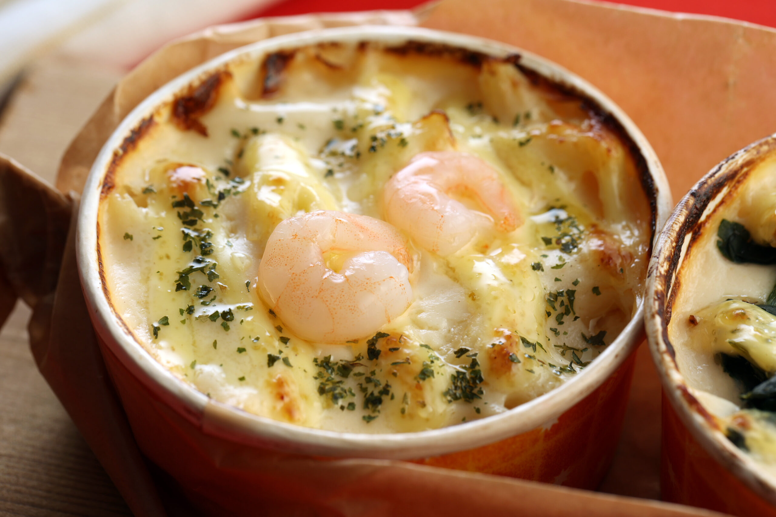コクのある濃厚なホワイトソースにチーズソースを乗せて焼き上げたグラタン。